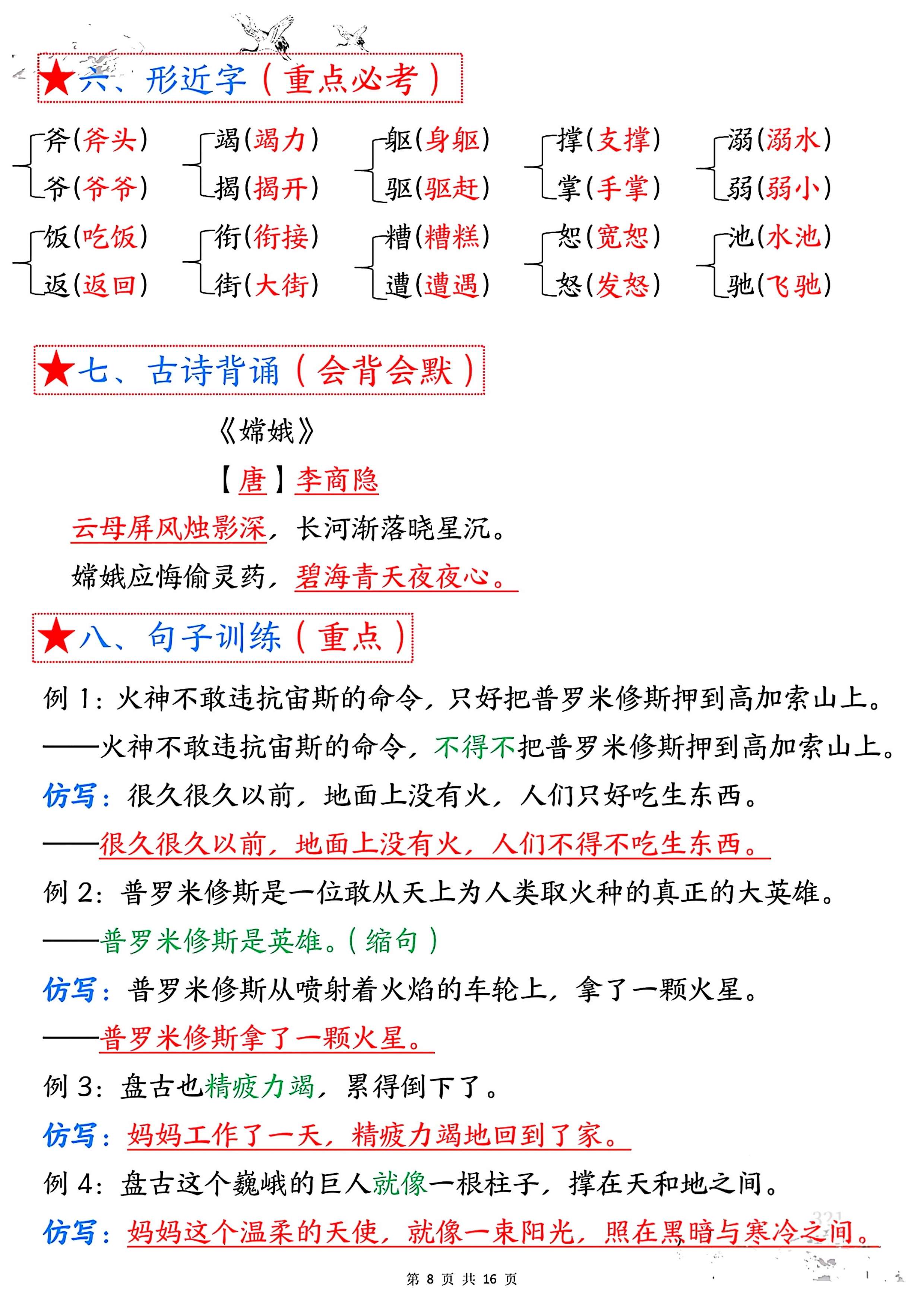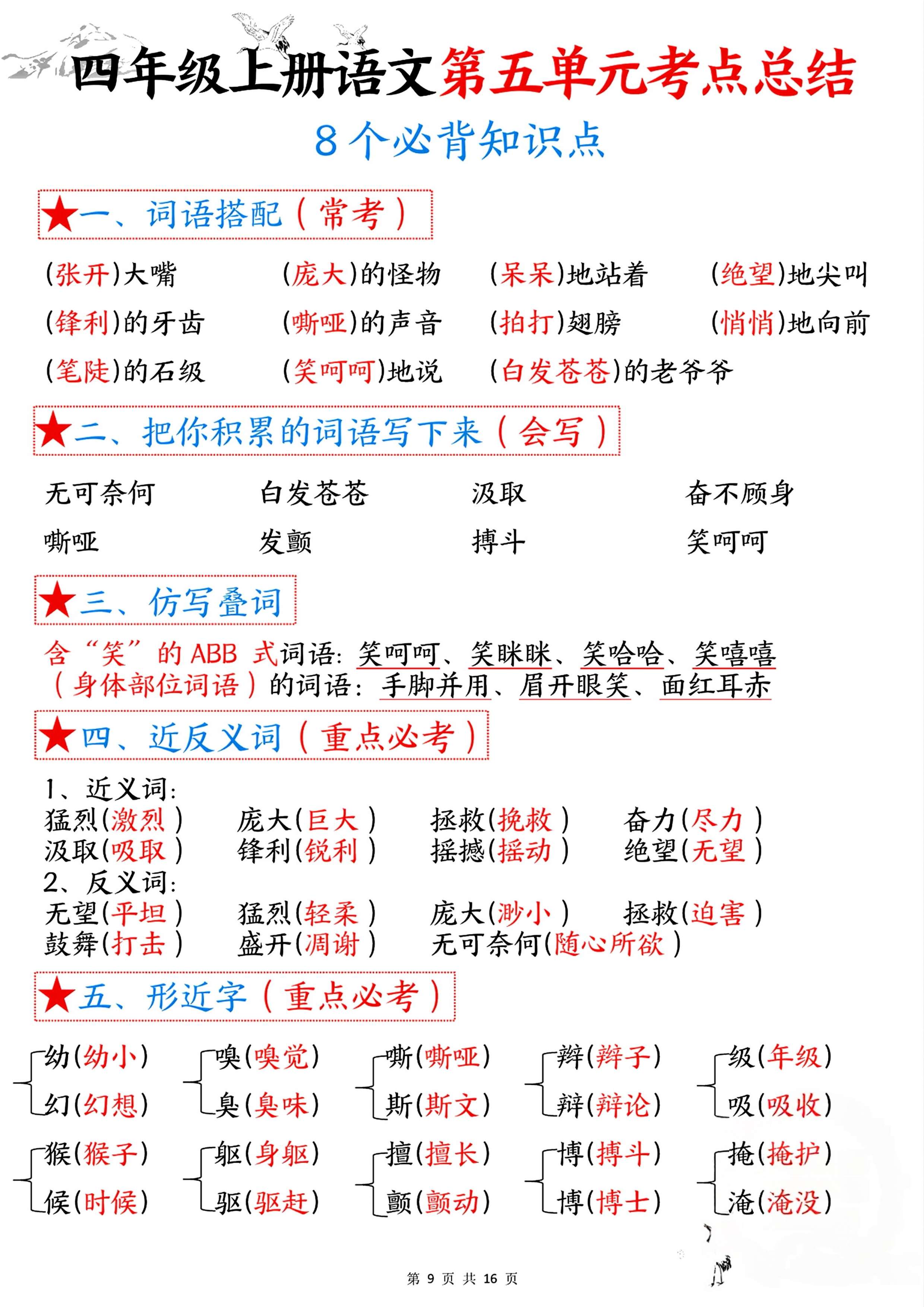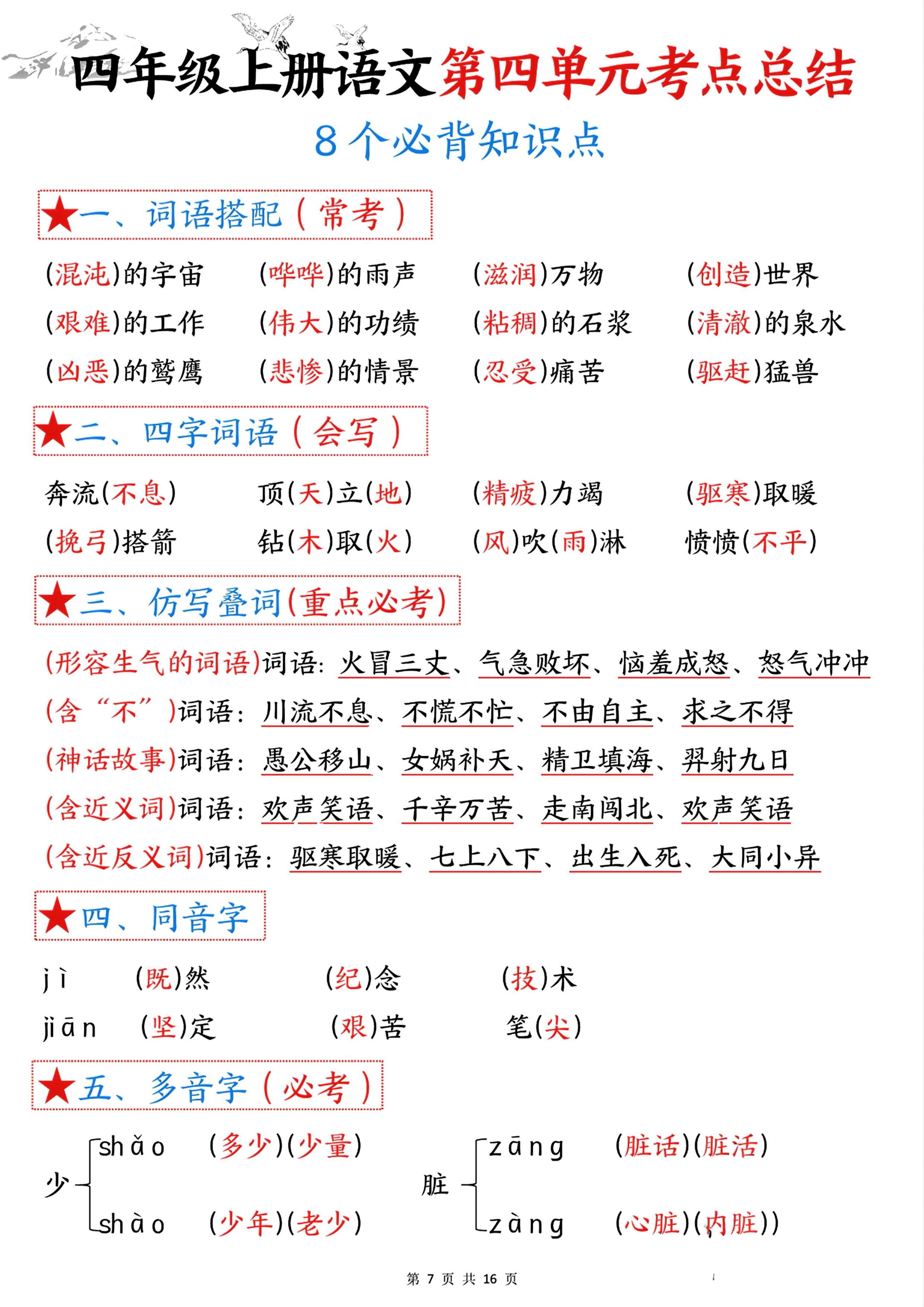 四年级语文上册1-8单元考点总结:8个必背知识点全搞定!