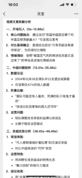 当然,元宝不仅可以提取文案,还可以帮你拆解分析结构。