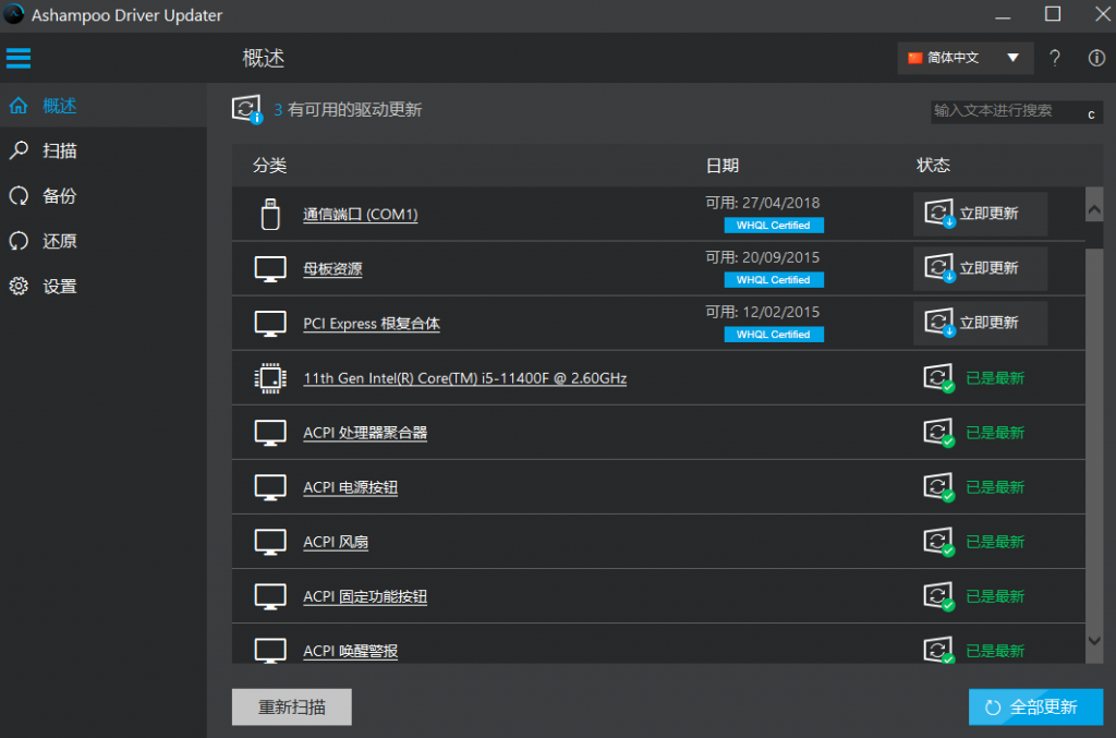 Ashampoo Driver Updater 是一款专业的驱动程序更新工具,支持自动检测、匹配并安装最新驱动,兼容超过15万种设备,可极大提升系统稳定性。 使用简单,且功能强大。