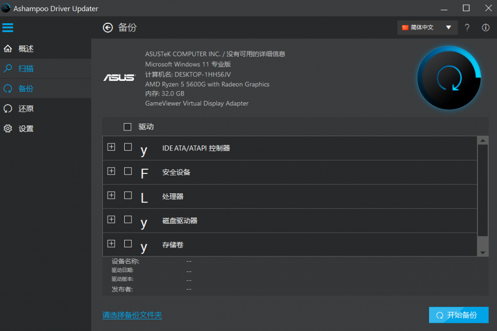 备份恢复:支持驱动备份和恢复功能,避免更新失误