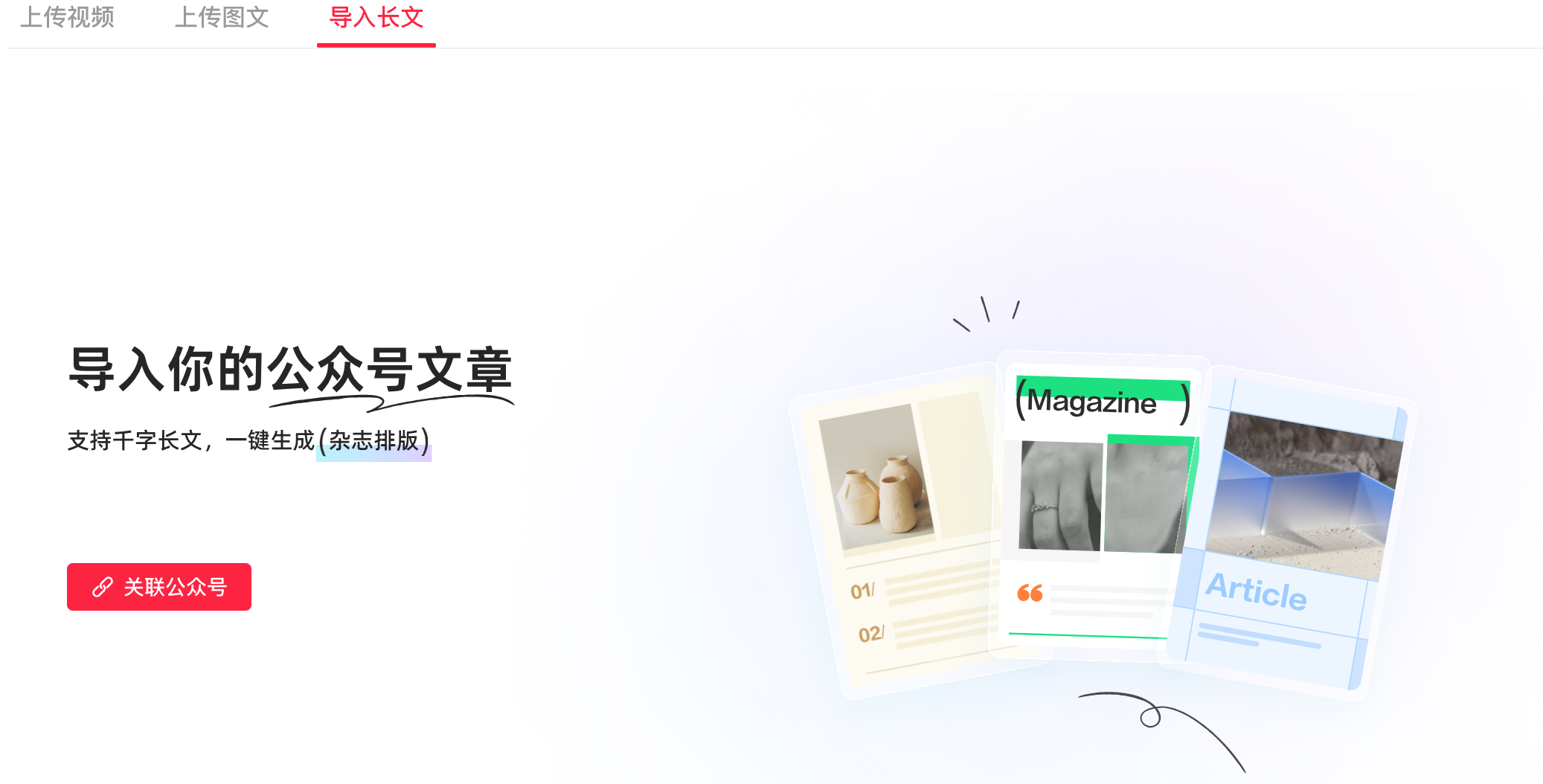 我试了下,关联账号后复制文章链接,一下就生成了,排版比自己弄的还好看。